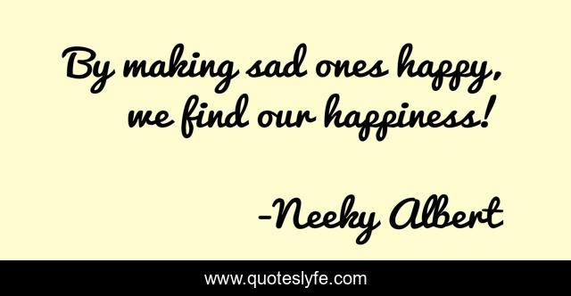 This page presents the quote "By making sad ones happy, we find our happiness!". Author of this quote is Neeky Albert. This quote is about enthusiasm, happiness, inspirational, sad,.