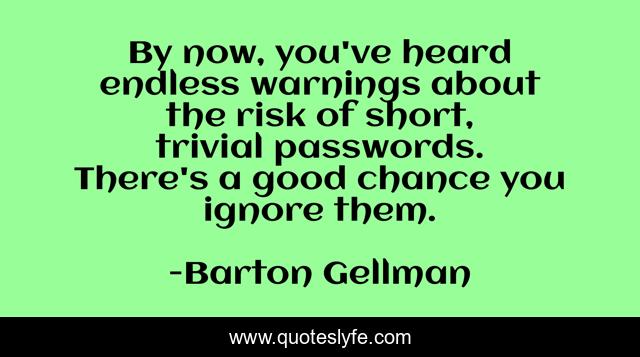 "Barton Gellman Quotes." Quoteslyfe.com, 2025. Fri. 05 Dec. 2025. <https://www.quoteslyfe.com/quote/By-now-you-ve-heard-endless-warnings-305818>.