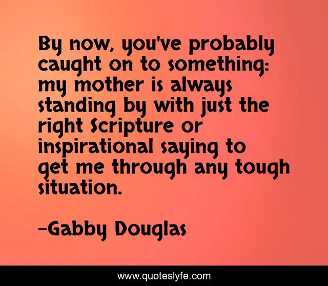 This page presents the quote "By now, you've probably caught on to something: my mother is always standing by with just the right Scripture or inspirational saying to get me through any tough situation.". Author of this quote is Gabby Douglas. This quote is about me, saying, mother,.