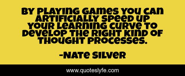 This page presents the quote "By playing games you can artificially speed up your learning curve to develop the right kind of thought processes.". Author of this quote is Nate Silver. This quote is about thought, speed,.