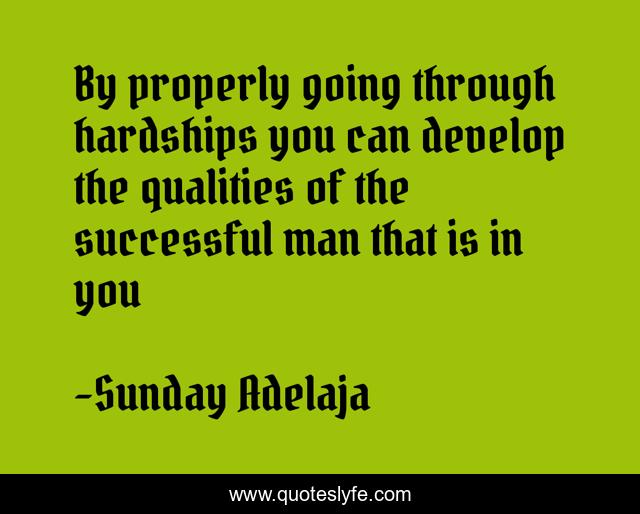 This page presents the quote "By properly going through hardships you can develop the qualities of the successful man that is in you". Author of this quote is Sunday Adelaja. This quote is about life, self-qualities, hardship, success, successful, calling, purpose, truth, proper,.