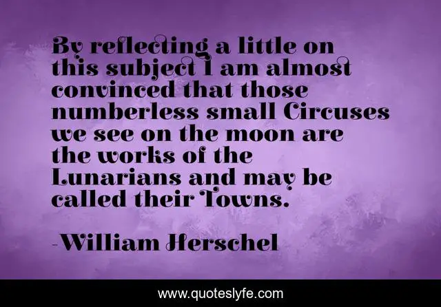 This page presents the quote "By reflecting a little on this subject I am almost convinced that those numberless small Circuses we see on the moon are the works of the Lunarians and may be called their Towns.". Author of this quote is William Herschel. This quote is about enlightenment, optimism, space,.