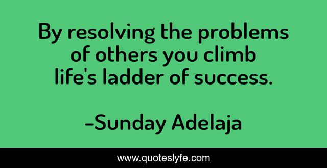 This page presents the quote "By resolving the problems of others you climb life's ladder of success.". Author of this quote is Sunday Adelaja. This quote is about problems, climb, resolving, success,.