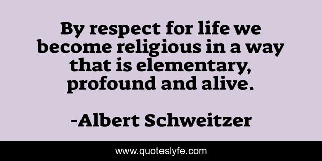 This page presents the quote "By respect for life we become religious in a way that is elementary, profound and alive.". Author of this quote is Albert Schweitzer. This quote is about life, way, profound,.