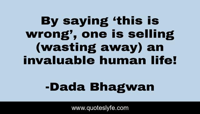 This page presents the quote "By saying ‘this is wrong’, one is selling (wasting away) an invaluable human life!". Author of this quote is Dada Bhagwan. This quote is about human-life, spiritual, wrong,.
