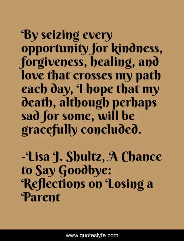 "Lisa J. Shultz, A Chance to Say Goodbye: Reflections on Losing a Parent Quotes." Quoteslyfe.com, 2025. Sun. 07 Dec. 2025. <https://www.quoteslyfe.com/quote/By-seizing-every-opportunity-for-kindness-forgiveness-121714>.