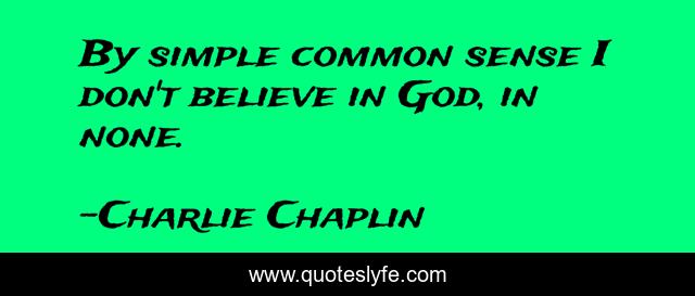 This page presents the quote "By simple common sense I don't believe in God, in none.". Author of this quote is Charlie Chaplin. This quote is about belief, atheist, superstition, atheism, gods, common-sense,.