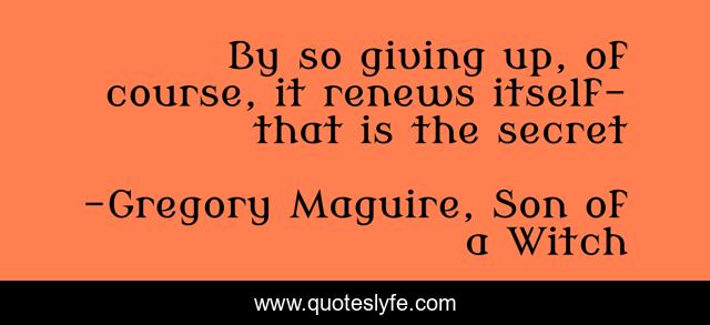 This page presents the quote "By so giving up, of course, it renews itself- that is the secret". Author of this quote is Gregory Maguire, Son of a Witch. .