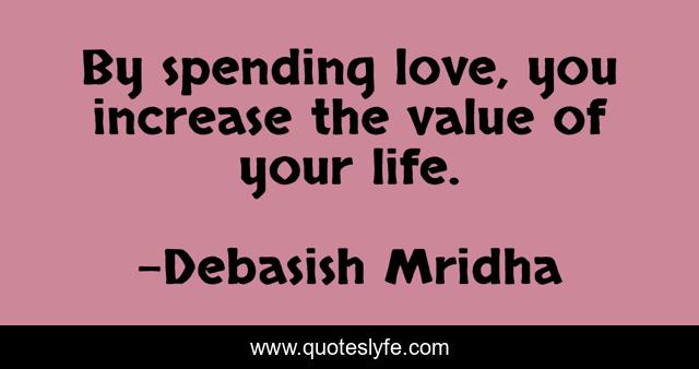 This page presents the quote "By spending love, you increase the value of your life.". Author of this quote is Debasish Mridha. This quote is about life, love, knowledge, inspirational, intelligence, philosophy, wisdom, quotes, affection,.
