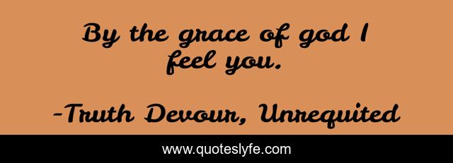 This page presents the quote "By the grace of god I feel you.". Author of this quote is Truth Devour, Unrequited. This quote is about faith, love, kindred-spirits, joy, karmic, soul, romance, twin-flames, sated,.