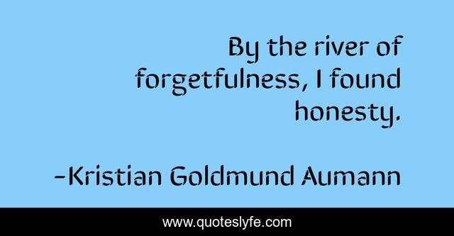 This page presents the quote "By the river of forgetfulness, I found honesty.". Author of this quote is Kristian Goldmund Aumann. This quote is about enthusiasm, river-of-forgetfulness, honesty, inspirational,.