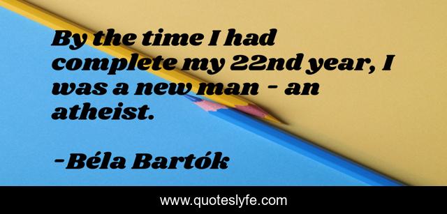 This page presents the quote "By the time I had complete my 22nd year, I was a new man - an atheist.". Author of this quote is Béla Bartók. This quote is about atheism, atheist, transformation, understanding,.