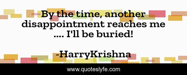 This page presents the quote "By the time, another disappointment reaches me .... I'll be buried!". Author of this quote is HarryKrishna. This quote is about life, disappointment,.