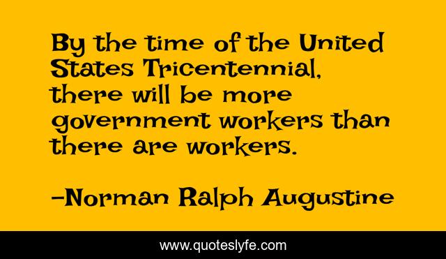 This page presents the quote "By the time of the United States Tricentennial, there will be more government workers than there are workers.". Author of this quote is Norman Ralph Augustine. This quote is about workers, time,.