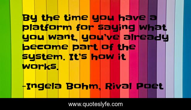 "Ingela Bohm, Rival Poet Quotes." Quoteslyfe.com, 2025. Sat. 06 Dec. 2025. <https://www.quoteslyfe.com/quote/By-the-time-you-have-a-platform-239277>.