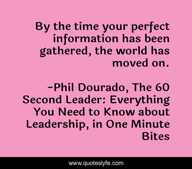 "Phil Dourado, The 60 Second Leader: Everything You Need to Know about Leadership, in One Minute Bites Quotes." Quoteslyfe.com, 2025. Fri. 05 Dec. 2025. <https://www.quoteslyfe.com/quote/By-the-time-your-perfect-information-has-219044>.