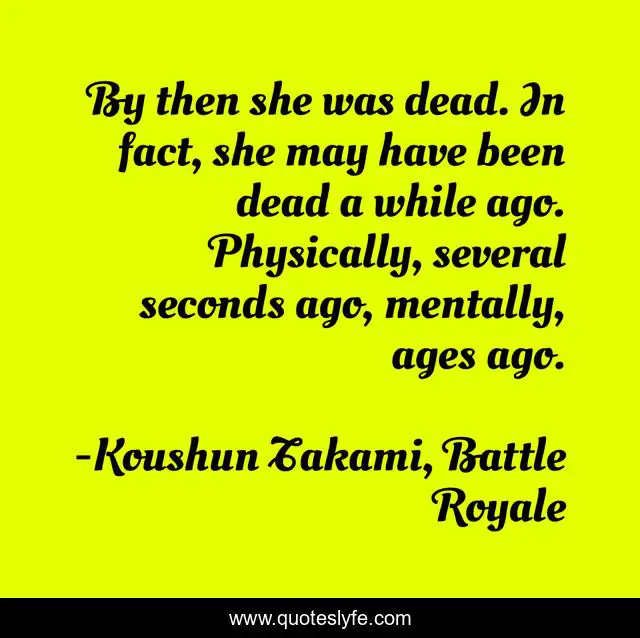 "Koushun Takami, Battle Royale Quotes." Quoteslyfe.com, 2025. Sun. 07 Dec. 2025. <https://www.quoteslyfe.com/quote/By-then-she-was-dead-In-fact-226519>.