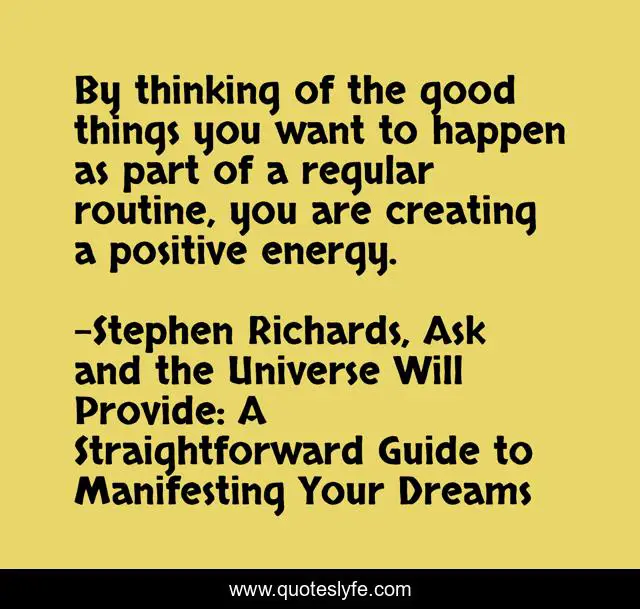 "Stephen Richards, Ask and the Universe Will Provide: A Straightforward Guide to Manifesting Your Dreams Quotes." Quoteslyfe.com, 2025. Mon. 08 Dec. 2025. <https://www.quoteslyfe.com/quote/By-thinking-of-the-good-things-you-44763>.