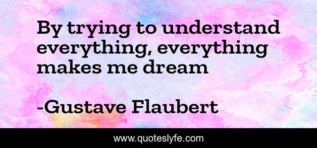 This page presents the quote "By trying to understand everything, everything makes me dream". Author of this quote is Gustave Flaubert. This quote is about everything, dreams,.