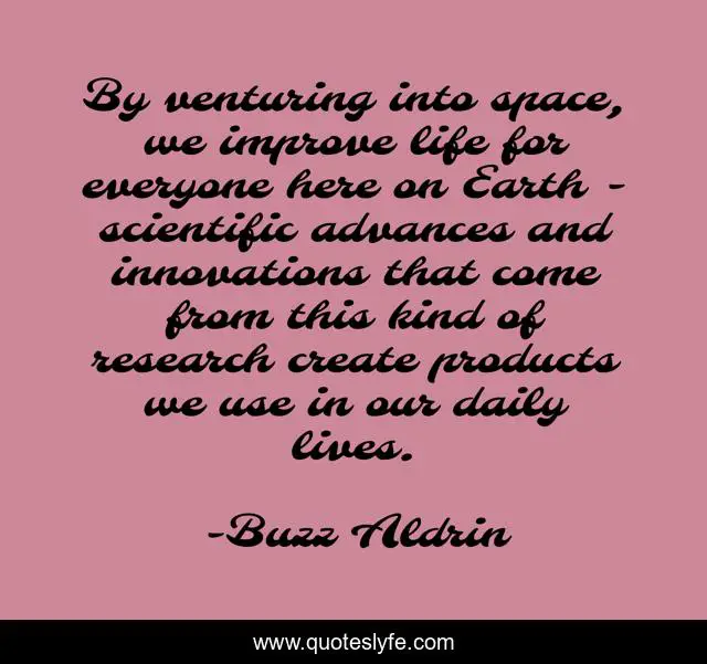 "Buzz Aldrin Quotes." Quoteslyfe.com, 2025. Mon. 08 Dec. 2025. <https://www.quoteslyfe.com/quote/By-venturing-into-space-we-improve-life-289561>.