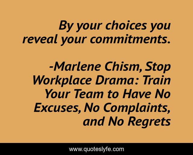 "Marlene Chism, Stop Workplace Drama: Train Your Team to Have No Excuses, No Complaints, and No Regrets Quotes." Quoteslyfe.com, 2025. Mon. 08 Dec. 2025. <https://www.quoteslyfe.com/quote/By-your-choices-you-reveal-your-commitments-140023>.