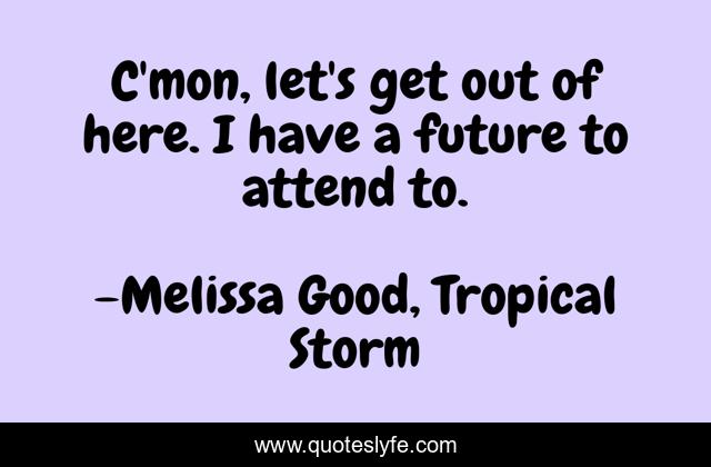 This page presents the quote "C'mon, let's get out of here. I have a future to attend to.". Author of this quote is Melissa Good, Tropical Storm. .