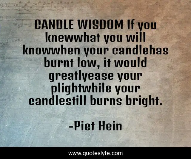 "Piet Hein Quotes." Quoteslyfe.com, 2025. Fri. 05 Dec. 2025. <https://www.quoteslyfe.com/quote/CANDLE-WISDOM-If-you-knewwhat-you-will-184208>.