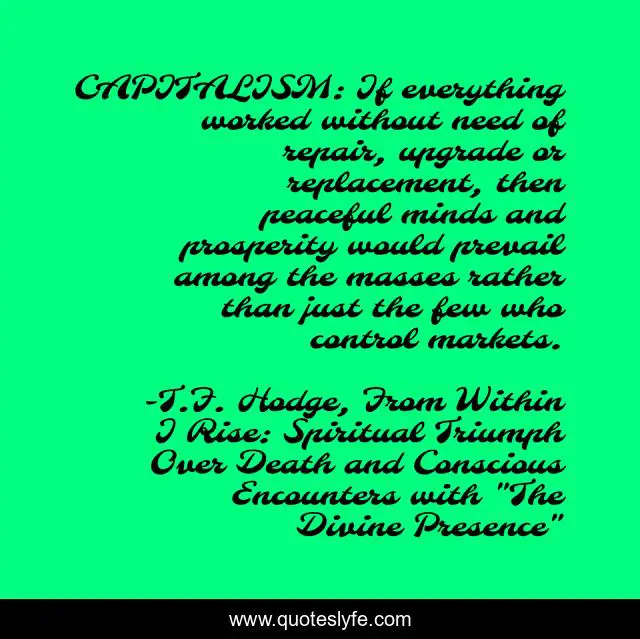 "T.F. Hodge, From Within I Rise: Spiritual Triumph Over Death and Conscious Encounters with "The Divine Presence" Quotes." Quoteslyfe.com, 2025. Fri. 05 Dec. 2025. <https://www.quoteslyfe.com/quote/CAPITALISM-If-everything-worked-without-need-of-211897>.