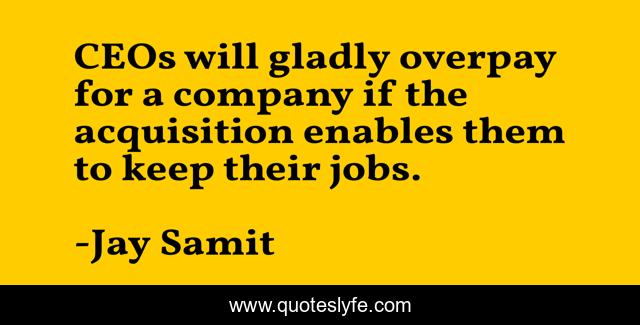 "Jay Samit Quotes." Quoteslyfe.com, 2025. Fri. 05 Dec. 2025. <https://www.quoteslyfe.com/quote/CEOs-will-gladly-overpay-for-a-company-106520>.