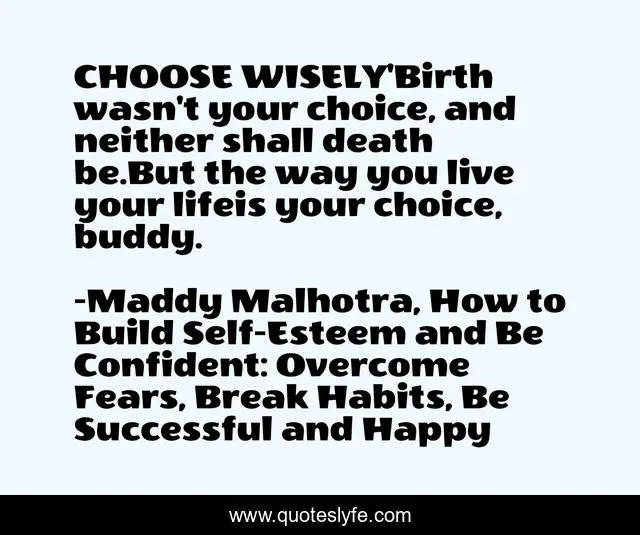 "Maddy Malhotra, How to Build Self-Esteem and Be Confident: Overcome Fears, Break Habits, Be Successful and Happy Quotes." Quoteslyfe.com, 2025. Mon. 08 Dec. 2025. <https://www.quoteslyfe.com/quote/CHOOSE-WISELY-Birth-wasn-t-your-choice-94748>.
