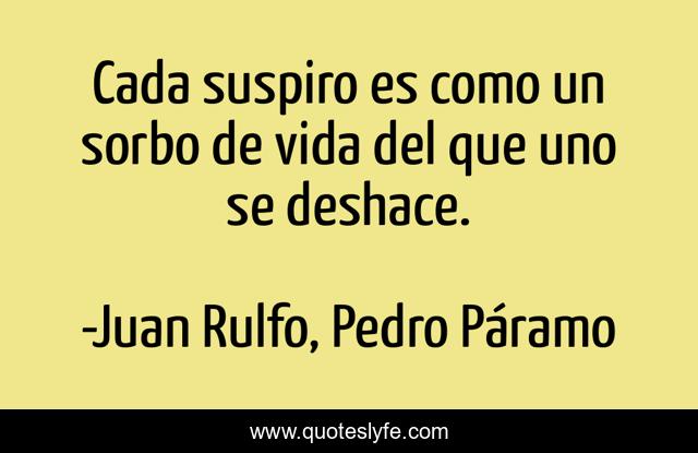 "Juan Rulfo, Pedro Páramo Quotes." Quoteslyfe.com, 2025. Fri. 05 Dec. 2025. <https://www.quoteslyfe.com/quote/Cada-suspiro-es-como-un-sorbo-de-21109>.