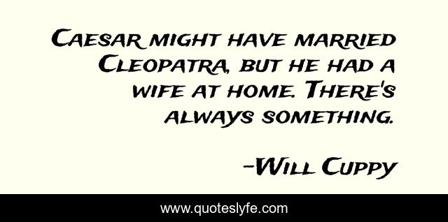 This page presents the quote "Caesar might have married Cleopatra, but he had a wife at home. There's always something.". Author of this quote is Will Cuppy. This quote is about always, wife, home,.