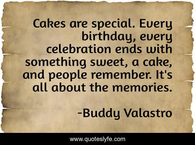 "Buddy Valastro Quotes." Quoteslyfe.com, 2025. Sat. 06 Dec. 2025. <https://www.quoteslyfe.com/quote/Cakes-are-special-Every-birthday-every-celebration-312879>.