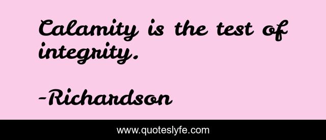 This page presents the quote "Calamity is the test of integrity.". Author of this quote is Richardson. .