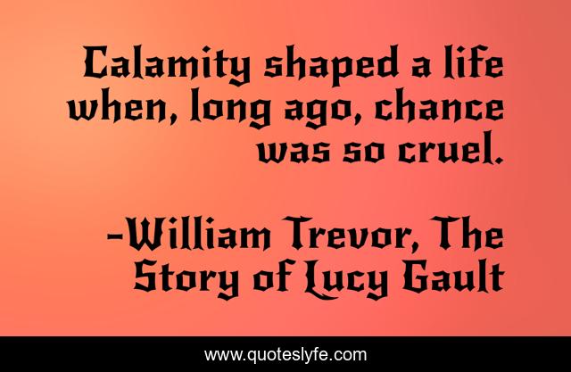 This page presents the quote "Calamity shaped a life when, long ago, chance was so cruel.". Author of this quote is William Trevor, The Story of Lucy Gault. This quote is about chance, pain, life,.