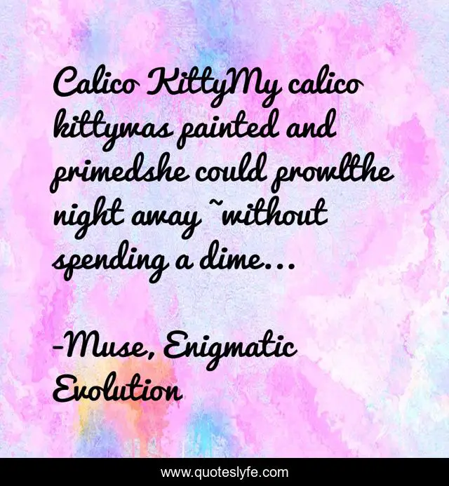 "Muse, Enigmatic Evolution Quotes." Quoteslyfe.com, 2025. Fri. 05 Dec. 2025. <https://www.quoteslyfe.com/quote/Calico-KittyMy-calico-kittywas-painted-and-primedshe-82854>.