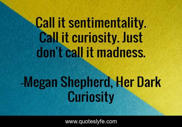 This page presents the quote "Call it sentimentality. Call it curiosity. Just don't call it madness.". Author of this quote is Megan Shepherd, Her Dark Curiosity. This quote is about dark, madness, curiosity,.