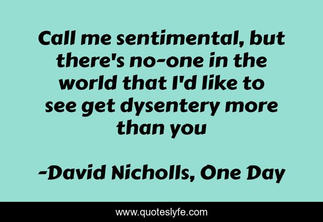 This page presents the quote "Call me sentimental, but there's no-one in the world that I'd like to see get dysentery more than you". Author of this quote is David Nicholls, One Day. .