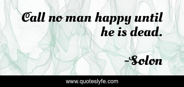 This page presents the quote "Call no man happy until he is dead.". Author of this quote is Solon. This quote is about greek, philosophy, the-good-life, happiness, history,.