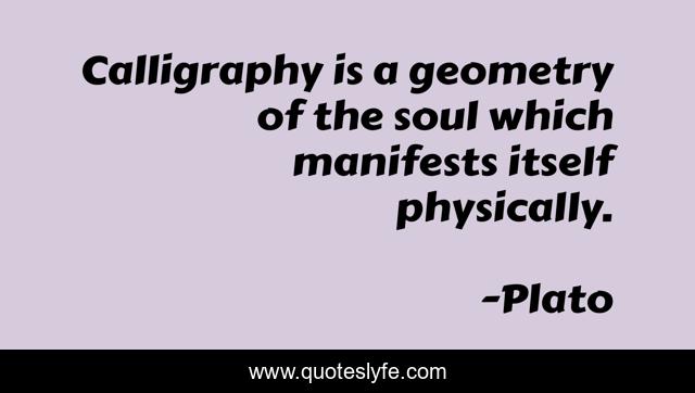This page presents the quote "Calligraphy is a geometry of the soul which manifests itself physically.". Author of this quote is Plato. This quote is about art, inspiration,.