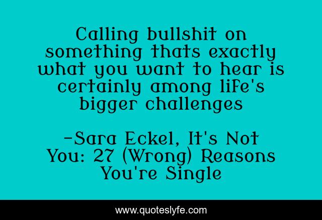 "Sara Eckel, It's Not You: 27 (Wrong) Reasons You're Single Quotes." Quoteslyfe.com, 2025. Sat. 06 Dec. 2025. <https://www.quoteslyfe.com/quote/Calling-bullshit-on-something-thats-exactly-what-35491>.