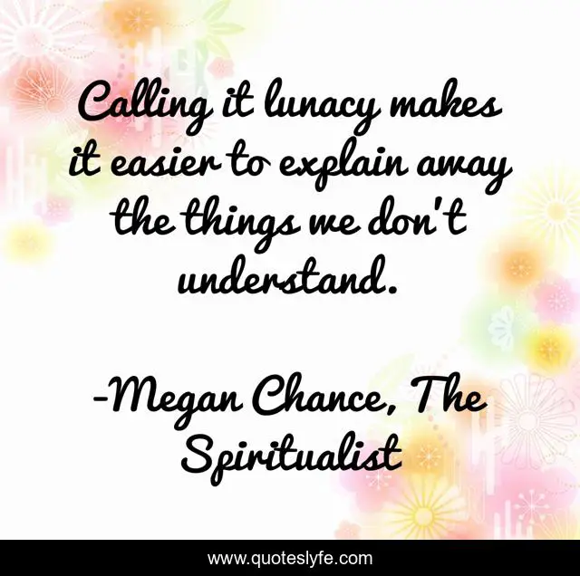 "Megan Chance, The Spiritualist Quotes." Quoteslyfe.com, 2025. Fri. 05 Dec. 2025. <https://www.quoteslyfe.com/quote/Calling-it-lunacy-makes-it-easier-to-145955>.