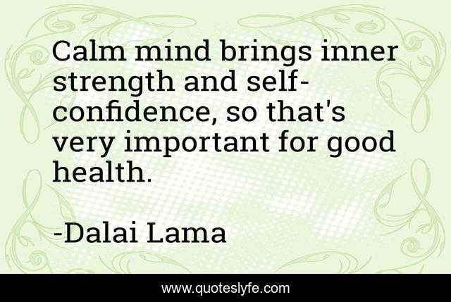 This page presents the quote "Calm mind brings inner strength and self-confidence, so that's very important for good health.". Author of this quote is Dalai Lama. This quote is about health, good, mind,.