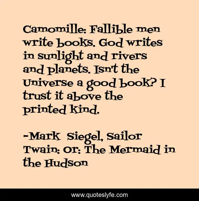 "Mark Siegel, Sailor Twain: Or: The Mermaid in the Hudson Quotes." Quoteslyfe.com, 2025. Fri. 05 Dec. 2025. <https://www.quoteslyfe.com/quote/Camomille-Fallible-men-write-books-God-writes-11527>.
