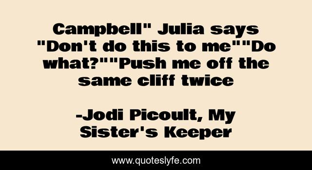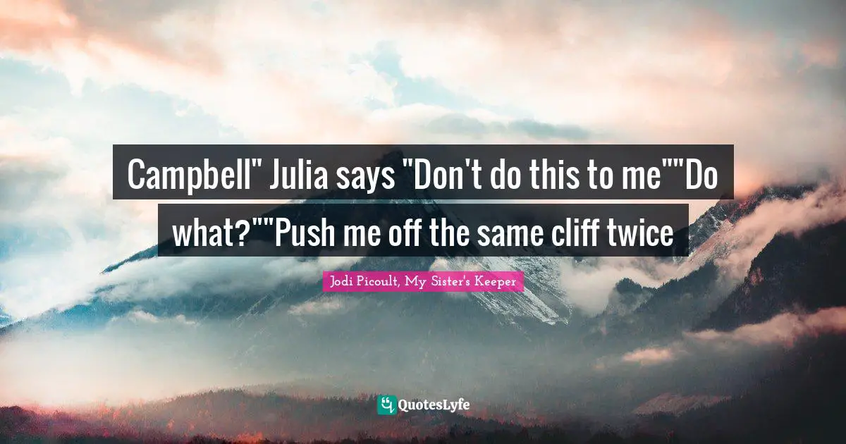 This page presents the quote "Campbell" Julia says "Don't do this to me""Do what?""Push me off the same cliff twice". Author of this quote is Jodi Picoult, My Sister's Keeper. This quote is about heartbreak, betrayal,.