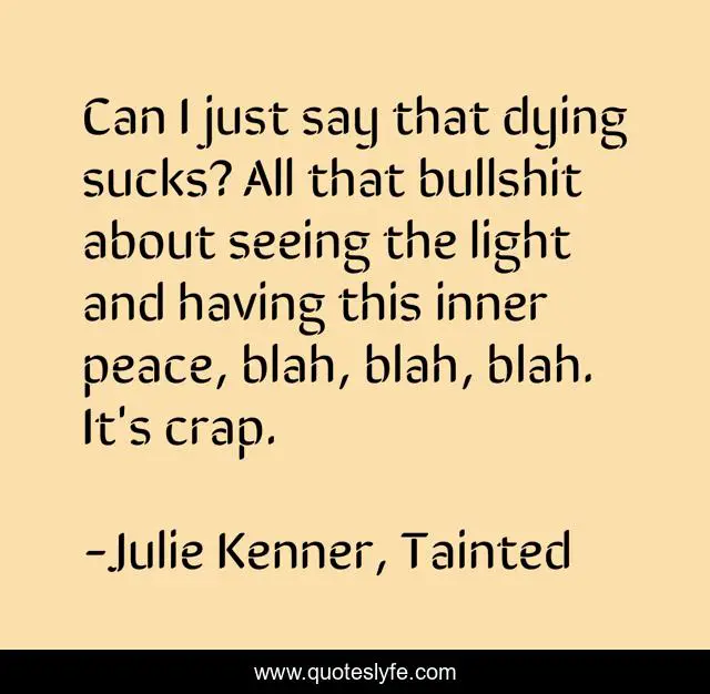 This page presents the quote "Can I just say that dying sucks? All that bullshit about seeing the light and having this inner peace, blah, blah, blah. It's crap.". Author of this quote is Julie Kenner, Tainted. .