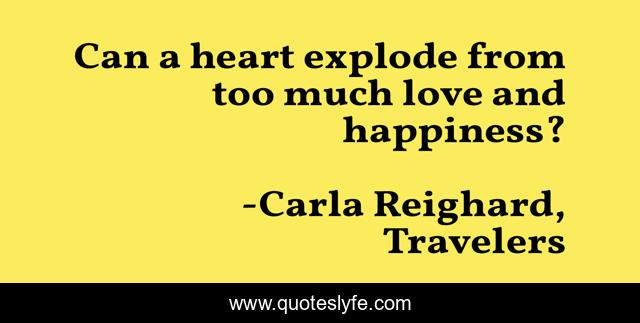 This page presents the quote "Can a heart explode from too much love and happiness?". Author of this quote is Carla Reighard, Travelers. This quote is about fantasy-young-adult, love, happiness, affection,.