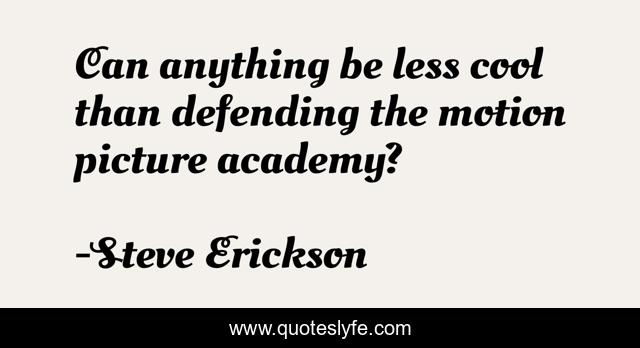 This page presents the quote "Can anything be less cool than defending the motion picture academy?". Author of this quote is Steve Erickson. This quote is about motion, picture, anything,.