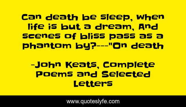 "John Keats, Complete Poems and Selected Letters Quotes." Quoteslyfe.com, 2025. Mon. 08 Dec. 2025. <https://www.quoteslyfe.com/quote/Can-death-be-sleep-when-life-is-131472>.