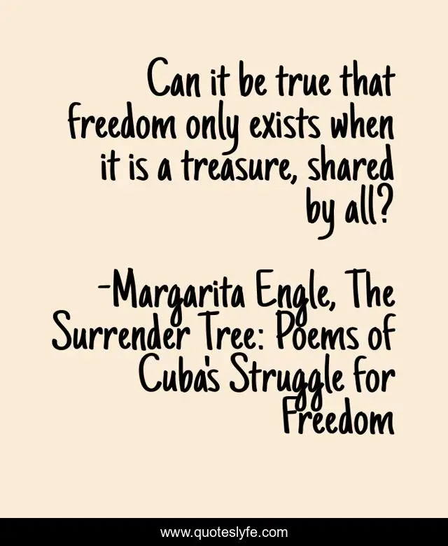 "Margarita Engle, The Surrender Tree: Poems of Cuba's Struggle for Freedom Quotes." Quoteslyfe.com, 2025. Sat. 06 Dec. 2025. <https://www.quoteslyfe.com/quote/Can-it-be-true-that-freedom-only-176663>.